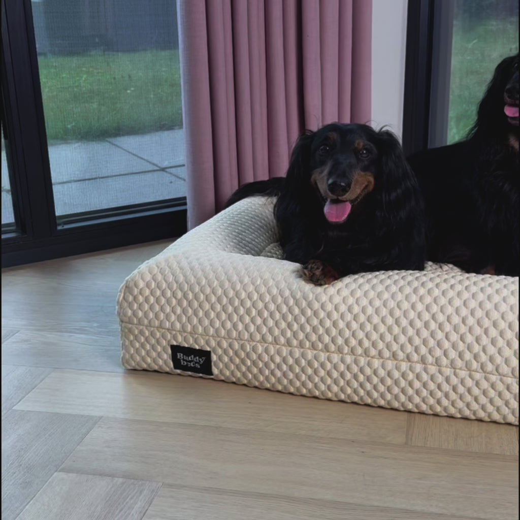 We hebben geΓ―nvesteerd in een unieke koeltechnologie die geen elektriciteit of koelkast nodig heeft. Dankzij de speciale vulling met zachte bolletjes ontstaan er kleine luchtcompartimenten onder je hond. Deze zorgen voor een luchtige, goed geΓ―soleerde en blijvend koele slaapplek β zelfs op warme dagen.