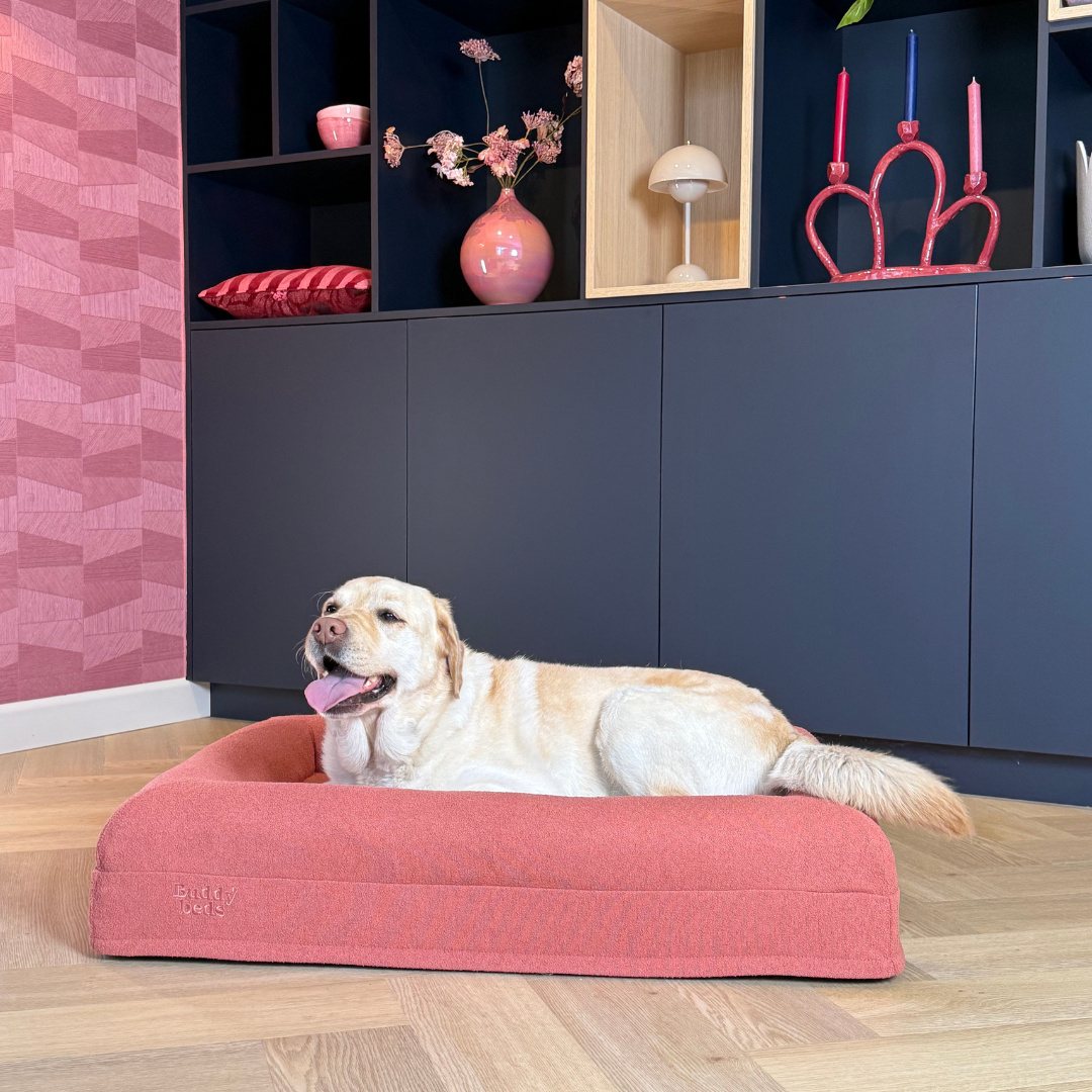 Geweven met zacht, verfijnd garen, voegt deze bouclé stof een warme, rustgevende oudroze tint toe aan je interieur. Het unieke, lusvormige ontwerp geeft je Buddy Bed een fluffy en comfortabele textuur, terwijl het orthopedische comfort behouden blijft. Perfect voor een stijlvolle toevoeging met een vleugje luxe!